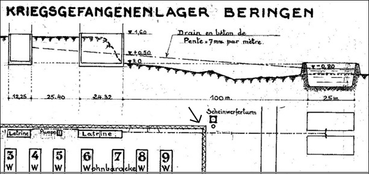 De metsersploeg van Gust Camps werd erbij gehaald.‘Wij gingen naar het kamp om een afloop te maken. Waar die gemakken stonden, op Stal aan, was een grote beerput en die zat vol. Wij moesten met buizen onder den draad van de omheining door werken. Dat was niet gemakkelijk. De Duitsers hadden aan de binnenkant van de omheining rollen prikkeldraad opgeworpen. Die rollen lagen ineengestrengeld. Ze hadden dat gedaan omdat er Russen ontsnapt waren door over de omheining te klimmen. Ze waren aan weerskanten van ne paal op den draad gaan staan en zo erover geklommen. Nu was dat een en al prikkeldraad. Daar was niet meer overheen te komen.