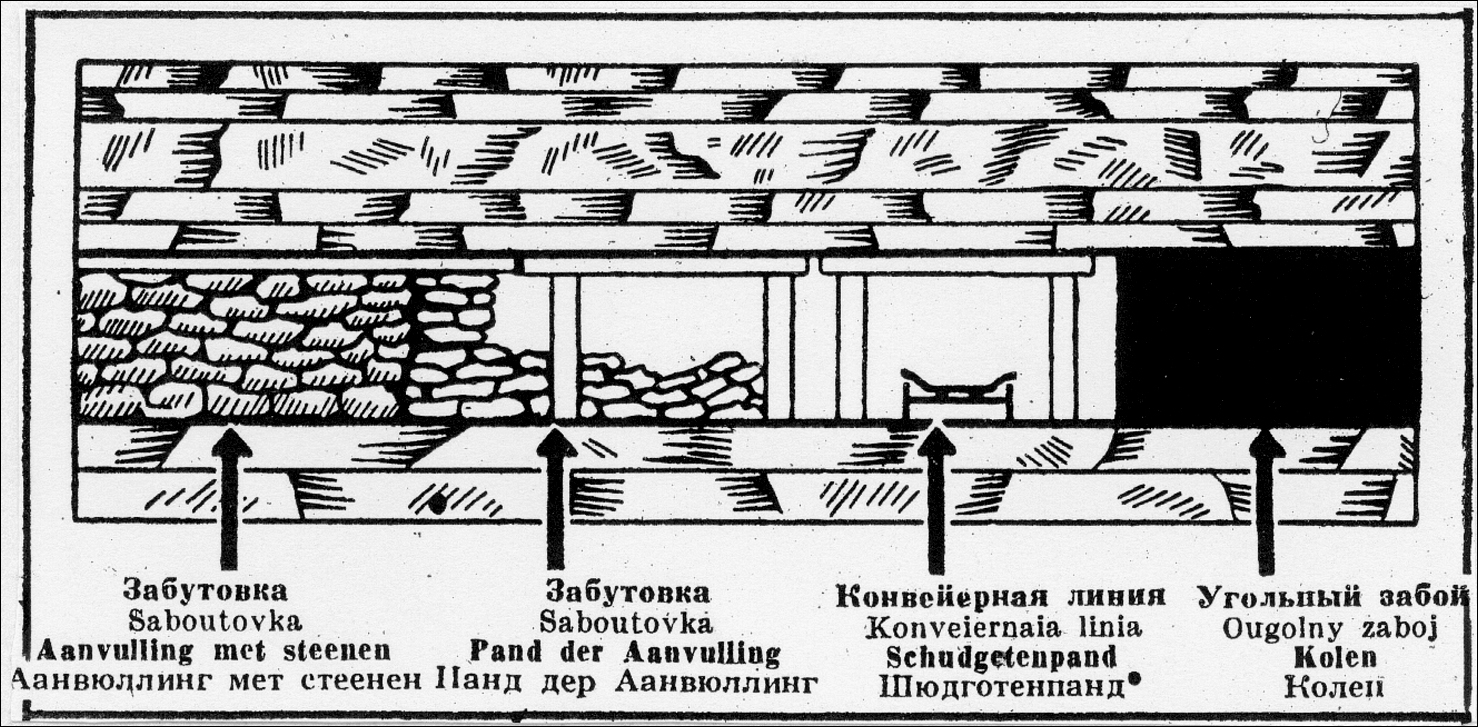 Als we moesten beginnen hadden we tussen de transportriem en de kool nog geen twintig centimeter om te staan. En het was soms zo laag dat we op ons knieën moesten gaan zitten. We werkten altijd op dezelfde plaats. Daarom haalden we na de post nog wat kolen uit, zodat we ons twee voeten konden zetten. Dan was het de volgende dag gemakkelijker om te beginnen. Wie tegen de riem zat als hij aan de kool begon, had tien keer meer werk.